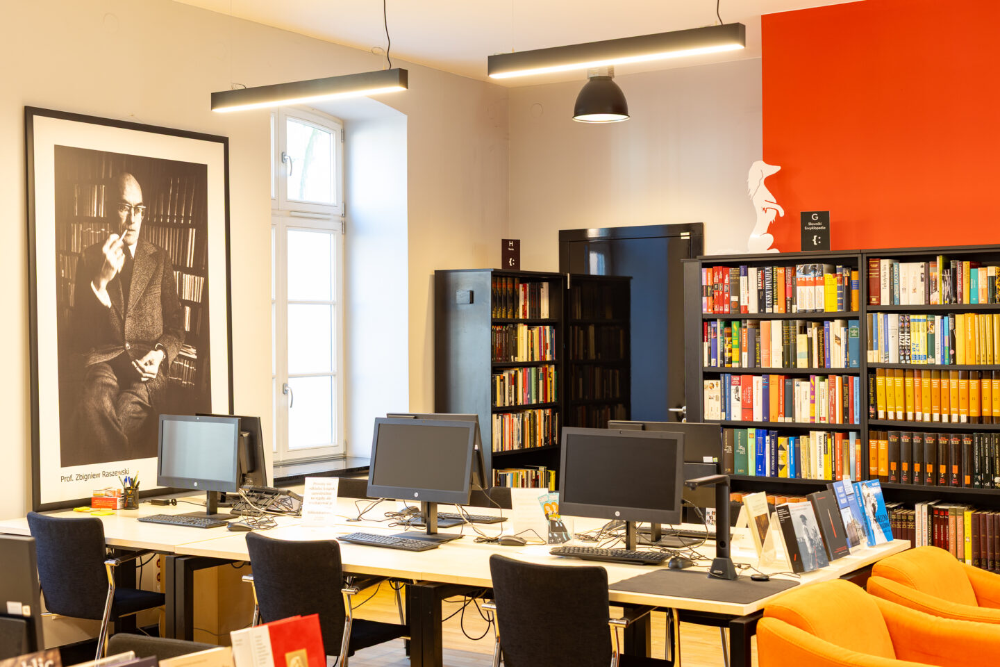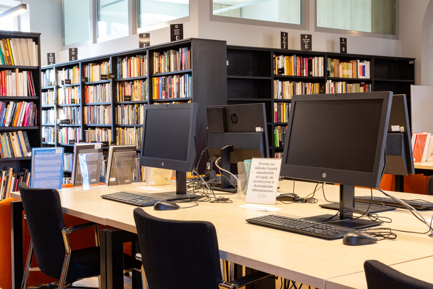 In the Reading Room, there is free access to the reference collection. Other collections are stored in the warehouse and can be ordered using the online catalog or with the assistance of the librarian on duty. The waiting time is approximately 5 minutes. Additionally, the collections of the Studio of Documentation of the Barbara Krasnodębska Theatre are available.